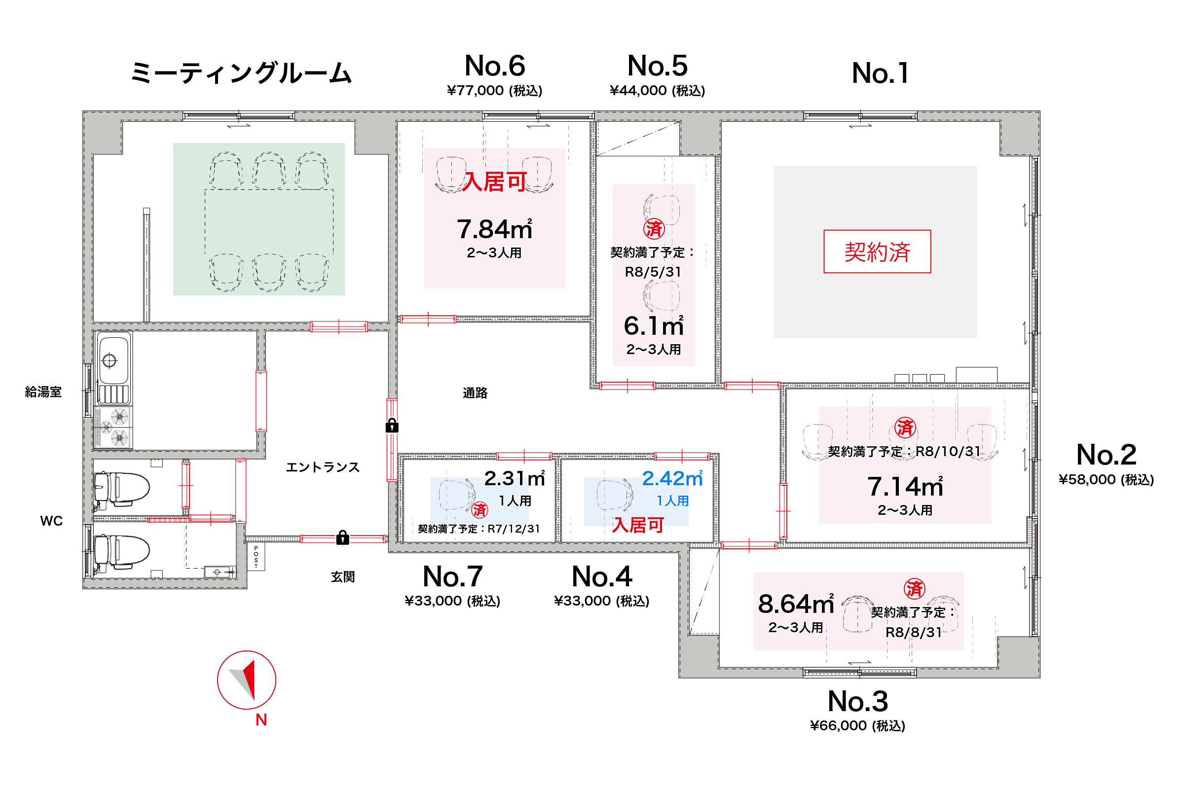 | No.6 | 入居可 | ¥77,000 | 7.84㎡ | 2〜3人 |