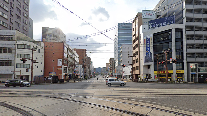 広電十日市町電停を下車後、相生通りを西へ